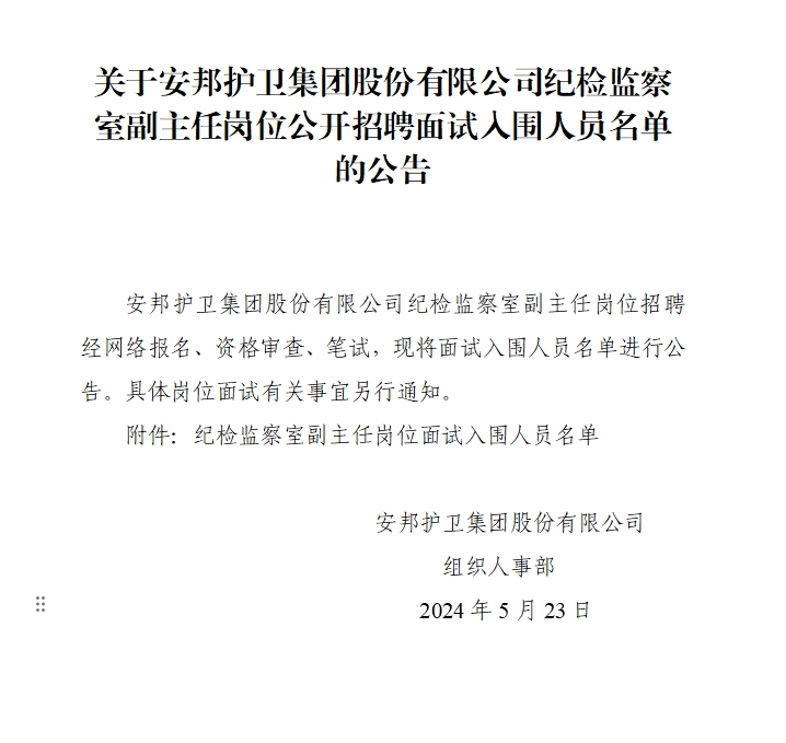 关于线上赌博 纪检监察室副主任岗位公开招聘面试入围人员名单的公告
