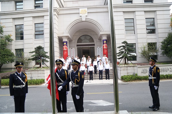 9月30日上午,浙江线上赌博 举行“国旗在我心中” 迎国庆升国旗仪式,集团总部全体干部员工及在杭子公司员工代表齐聚总部大楼前,怀着激动与喜悦的心情,凝望五星红旗冉冉升起,祝福伟大祖国繁荣富强,热烈庆祝中华人民共和国成立70周年。