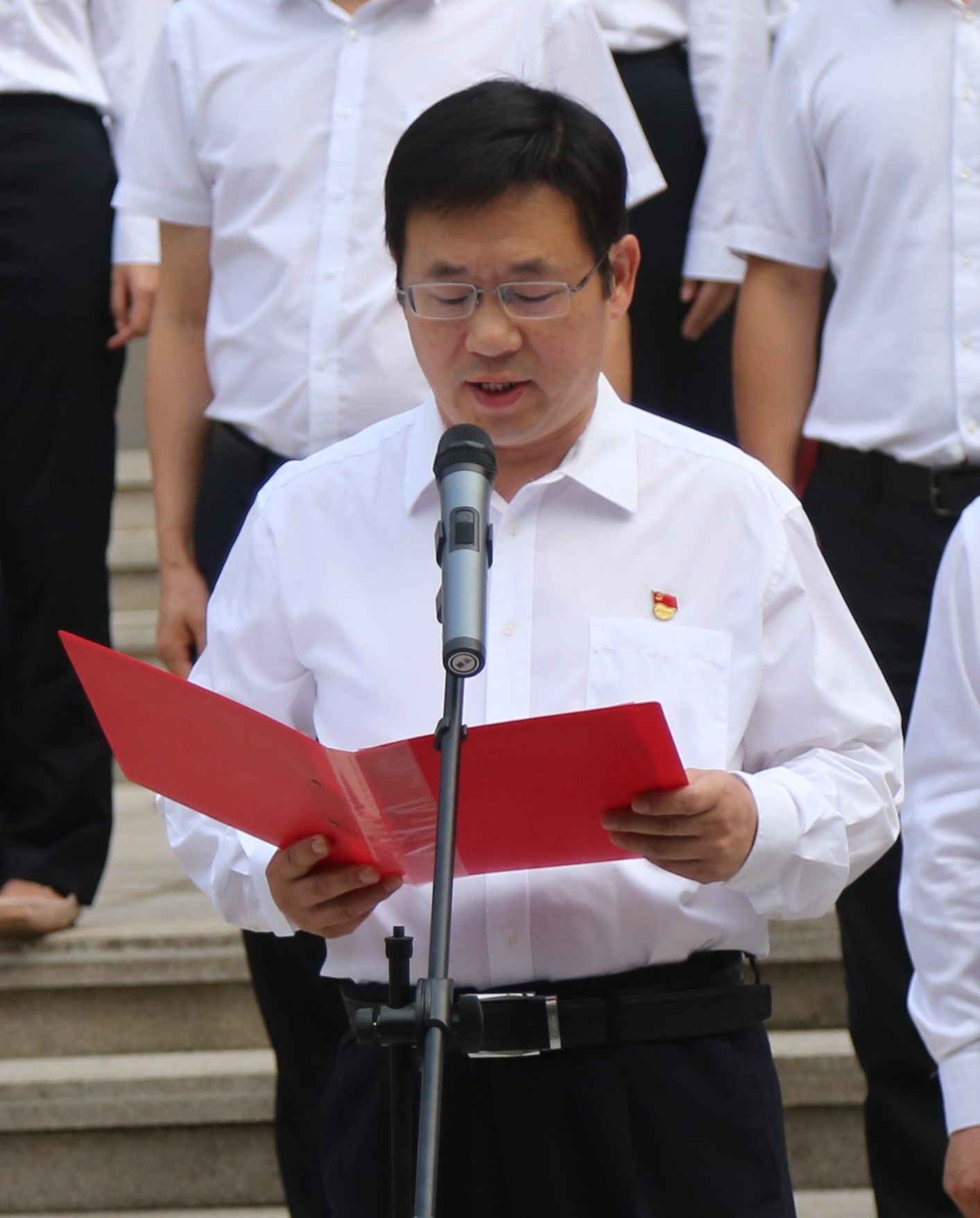 集团党委书记、董事长吴高峻出席升旗仪式并讲话。集团党委副书记、董事、总经理诸葛斌主持仪式。