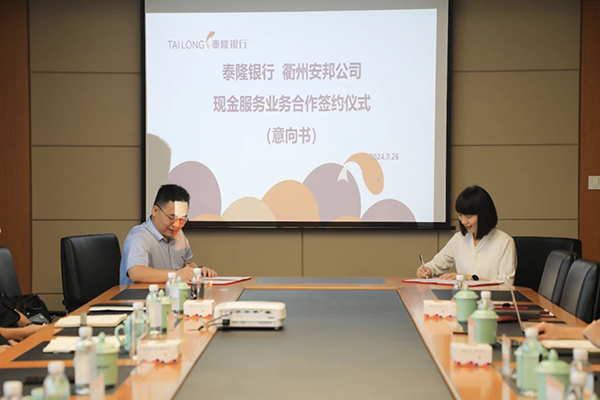 衢州线上赌博与泰隆银行衢州分行签订现金服务业务合作意向书
