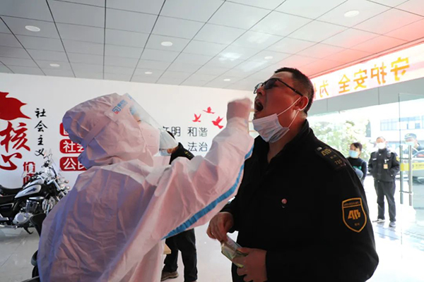 公司严格落实疫情防控措施,所有检测人员分批次进行核酸检测。在现场工作人员的统一安排下,公司人员依次有序的进行排队,配合完成样本采集。