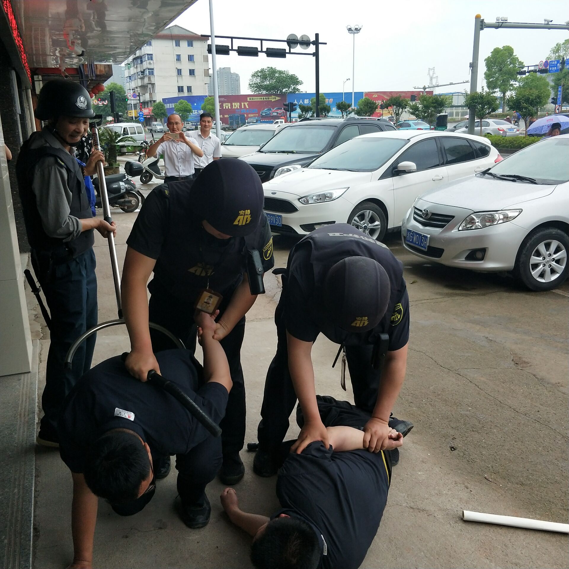 此次演练现场模拟中队在运送款箱时突遇可疑人试图对标的物进行抢劫,护卫人员喊话无果情况下,立即启动防抢应急预案,联合将歹徒制服。