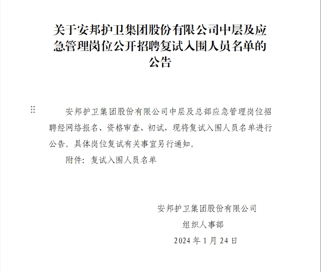 关于线上赌博 中层及应急管理岗位公开招聘复试入围人员名单的公告