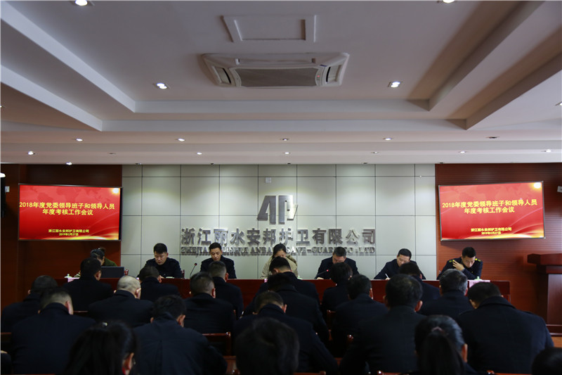 根据集团公司党委《关于做好2018年度子公司领导班子和领导人员年度考核工作的通知》精神,2月27日,浙江丽水安邦护卫有限公司在2楼会议室召开党委领导班子和领导人员年度考核工作会议。集团公司组织人事部部长王萍到会指导,公司党委领导班子,总经理助理,各部门、大队、子公司副职以上干部,机关全体行政人员参加会议,会议由公司党委委员、副总经理陈伟胜主持。