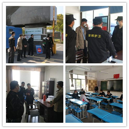 ▲安邦保安公司副总经理秦万生带领各部门负责人走访各学校,指导保安员做好复学准备工作