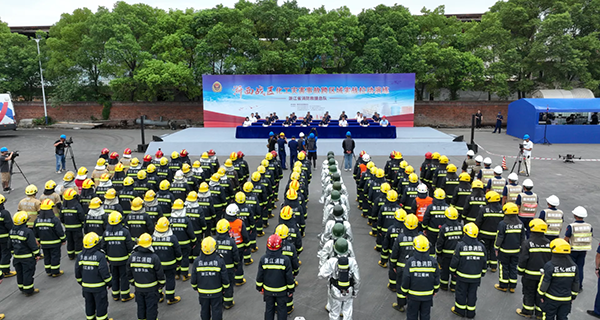 9月22日下午,由浙江省消防救援总队主办,衢州市消防救援支队承办,浙江衢州线上赌博有限公司,杭州市、绍兴市、金华市消防救援支队,巨化集团专职消防大队,浙江豪邦化工有限公司协办的浙西战区化工灾害事故跨区域实战拉动演练在衢州智造新城举行。