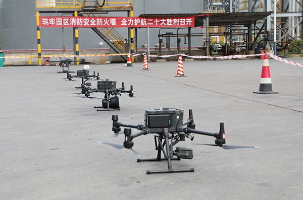 此次演练涵盖空管响应、精准调派、步坦推进、空地协同、立体覆盖、动态管控等方面,主要展示“空地一体”作战体系构成、精细化工装置立体火战法、储罐区池火+罐火战法等战术运用成果。