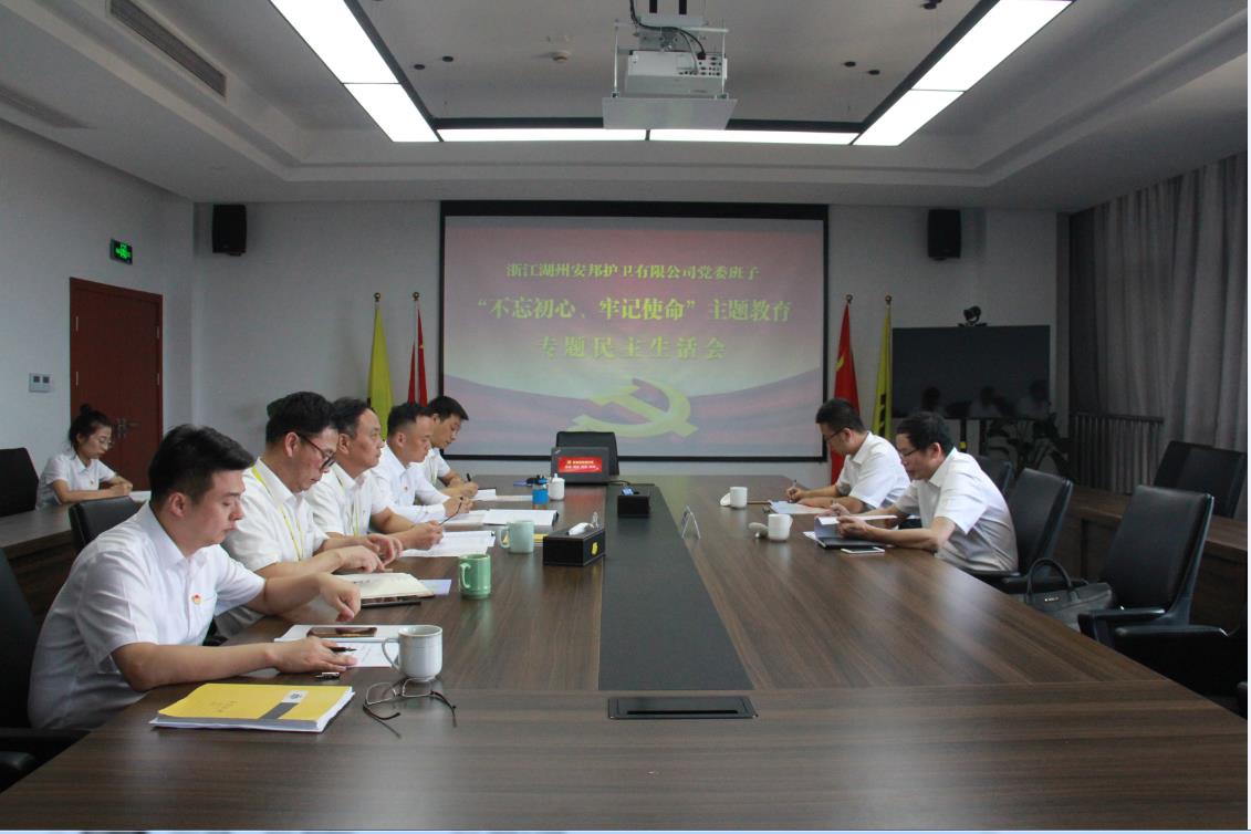根据中共中央纪委机关、中共中央组织部、中央“不忘初心、牢记使命”主题教育领导小组印发《中共中央纪委机关中共中央组织部中央“不忘初心、牢记使命”主题教育领导小组关于第一批主题教育单位开好“不忘初心、牢记使命”专题民主生活会的通知》文件精神和集团党委相关工作要求,浙江湖州安邦护卫有限公司党委根据主题教育工作安排,于2019年9月12日开展“不忘初心、牢记使命”主题教育专题民主生活会。集团公司党委委员、副总经理骆金海、党委办公室副主任宋俊强、湖州公司党委班子全体成员参加了会议。