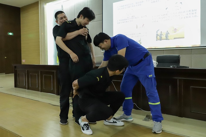 随后开展消防器材实操,锻炼员工的实战能力。嘉兴蓝天救援队的老师演示了正确使用灭火器的方法,员工们撸起袖子亲身学习体验,确保在危机关头能正确熟练使用。