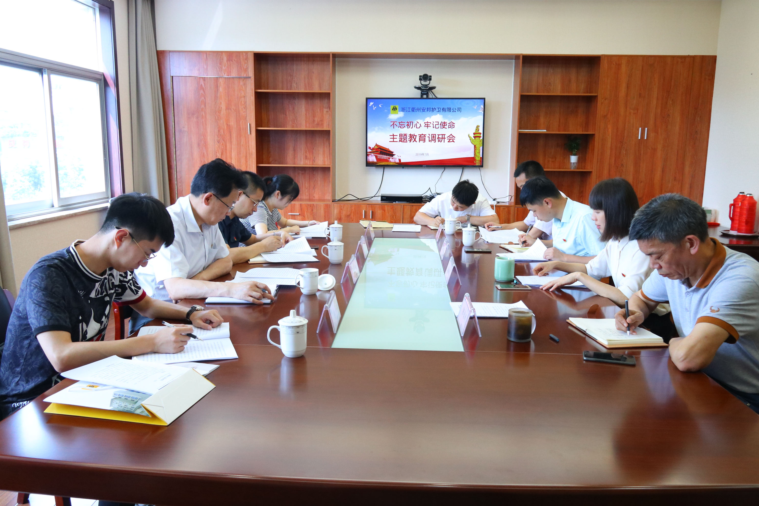 党委副书记余兴才一行来到浙江衢州线上赌博有限公司,开展“不忘初心、牢记使命”主题教育调研,衢州公司党委书记、总经理张淑芬,党委副书记、纪委书记郭启明,党委委员、副总经理郑胜,党委委员、总经理助理琚苏炳参加调研会。