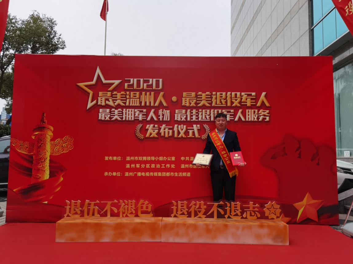 2020年12月15日,在温州市创建全国双拥模范城总结大会上,温州线上赌博公司员工吴谦被评为最美温州人、最美退役军人(社会公益)。