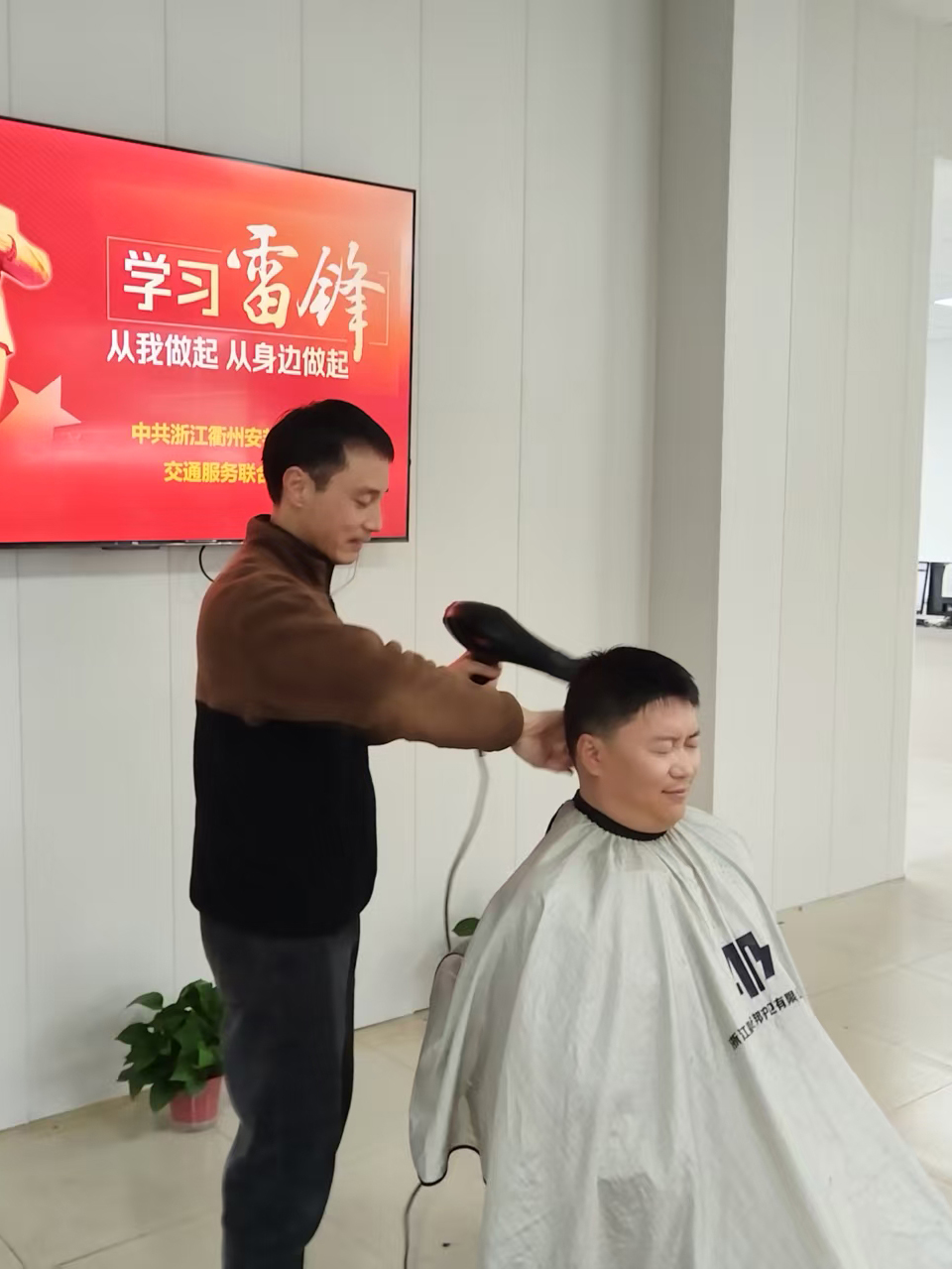 衢州市安邦机动车驾驶人考试服务有限公司、交通服务联合党支部开展“学雷锋 树新风”免费理发志愿服务活动,广大教练学员们纷纷前来参与。志愿者把提前准备好的号码牌按照报名先后顺序发放给大家,理发师一边跟大家聊天一边按照他们的要求修剪头发,现场秩序井然,气氛融洽,剪完头发后大家纷纷为党员和理发师点赞。