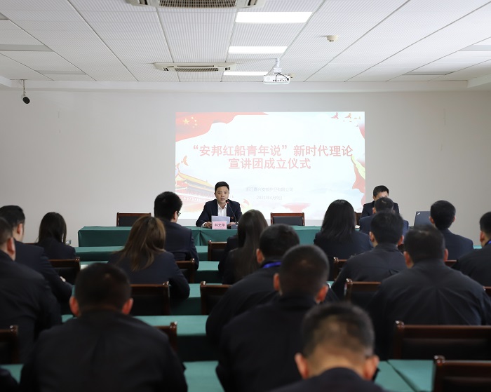 为深入学习贯彻习近平总书记在党史学习教育动员大会上的重要讲话精神,贯彻落实集团党史学习教育动员部署会的要求,4月9日下午,嘉兴线上赌博组织举办“安邦红船青年说”新时代理论宣讲团成立仪式。活动由公司党委副书记、副总经理徐涯立主持,公司党委书记、董事长、总经理韩光华作重要讲话。公司党委班子成员、职能部门员工、党员代表及团员代表共计40人参加。