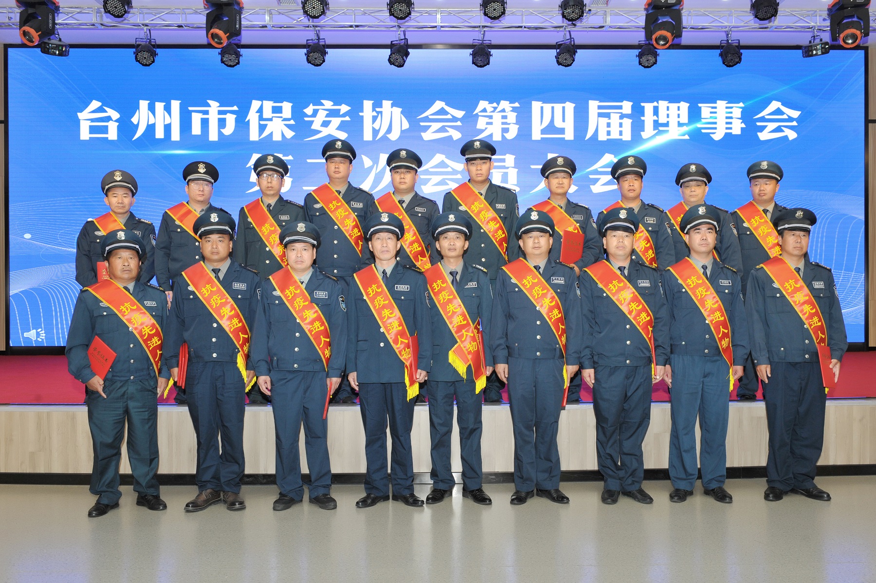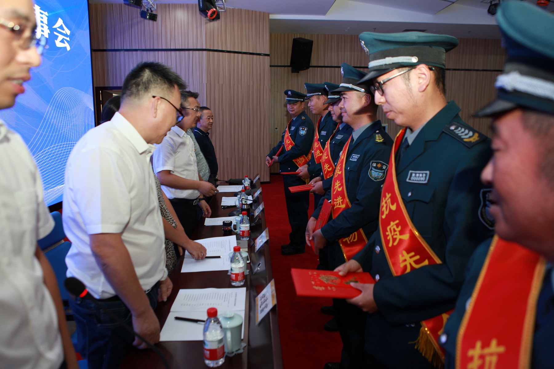 会议宣读《关于2019年度全市先进保安服务公司和优秀保安员综合考核结果的通报》、《关于台州市保安行业抗疫先进人物的通报》,并为获得抗疫先进人物的保安员颁发荣誉证书。