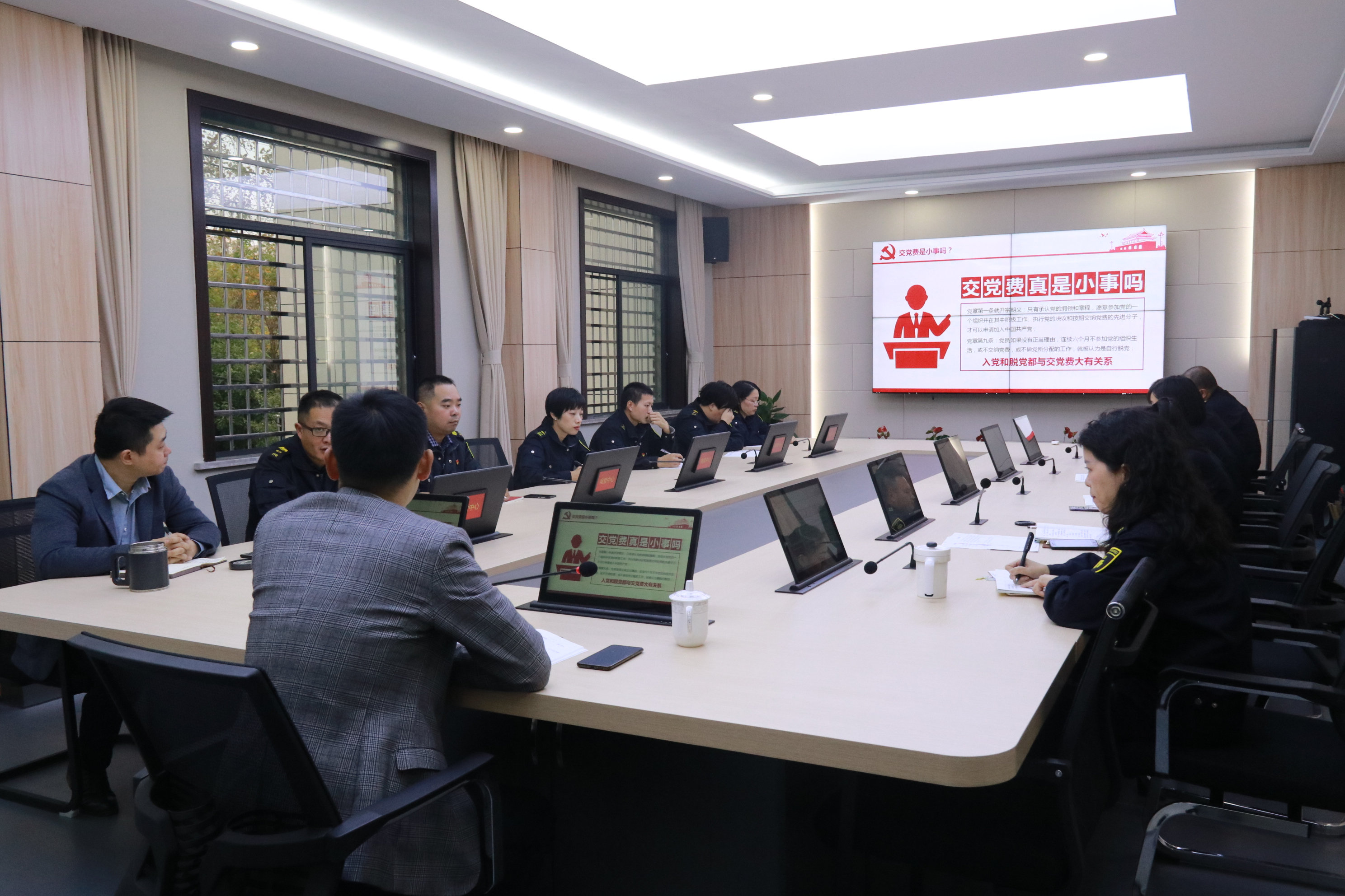 11月15日下午,浙江衢州线上赌博有限公司机关党支部开展支部书记讲党课暨主题党日活动。党支部书记郑胜以《“交”党费这件事》为主题,充分阐述了党费收缴工作的目的意义以及党员交纳党费的重要性与必要性。