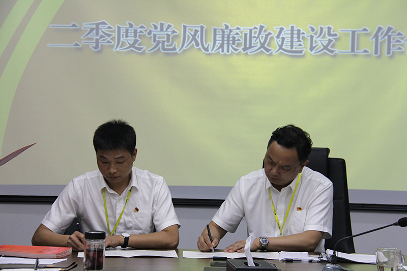 会上,全体与会人员观看反腐警示教育片,党委书记莫继权与公司各部门负责人、各支部书记签订《2018年党风廉政建设责任书》。