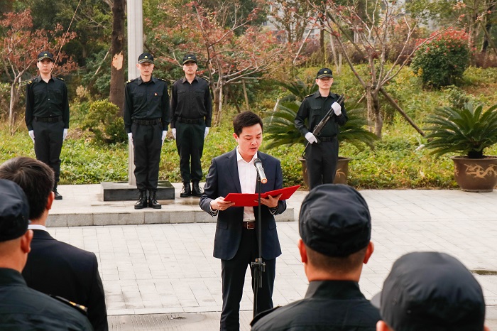 红旗猎猎,方阵整齐。在雄壮的国歌声中,护卫队员们精神抖擞、神情专注,再次深刻感悟红船畔金融卫士的初心使命和责任担当。