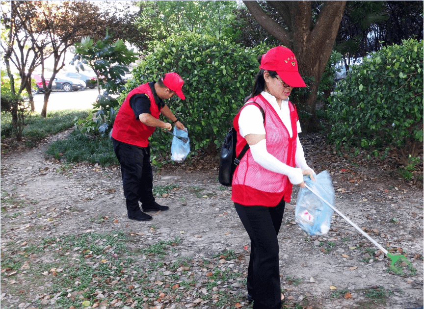 每个周末,台州市民广场旁总会出现一群穿着“台州线上赌博服”的义工身影,他们拿着垃圾袋沿路“捡起垃圾来”。