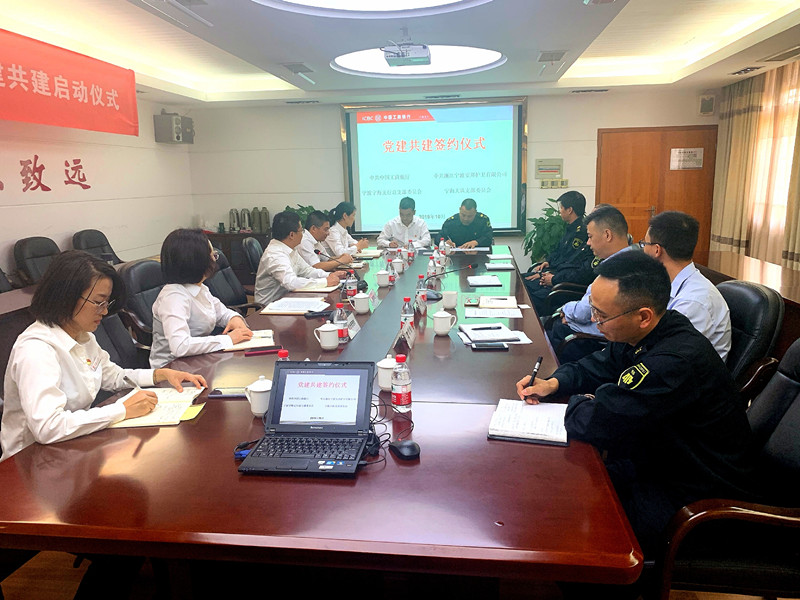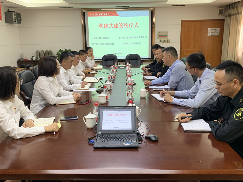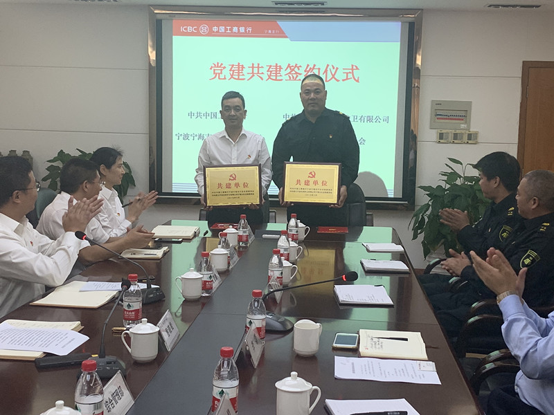 10月23日上午,宁波安邦公司宁海大队党支部与工商银行宁波宁海支行党总支举行党建共建签约授牌仪式,公司党委副书记李明,工商银行宁波宁海支行党总支书记童晓松等双方代表共同参加签约仪式。