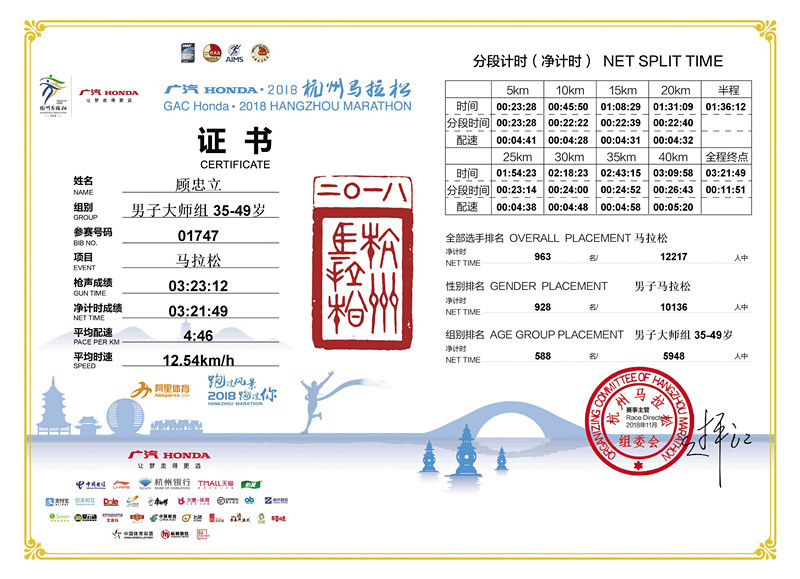 在短短三年时间内,他先后参加比赛近百次,取得了全马3小时21分49秒的好成绩,这对于他这个“新马”来说,绝对是一个很不错的战绩。通过跑步,他不仅找到了年轻的感觉,同时工作中又有了充沛的精力,在自己享受“跑马”带来乐趣的同时,他还积极动员中队其他的员工一起参加,如今,他所在的中队已有6人加入到“跑马”团队中。至此,顾忠立对自己从事的押运事业更有自信,工作起来更加得心应手,马拉松的精神,也在始终激励着他。“我对押运事业,一定会像跑马拉松那样,始终热爱,并将长期坚持下去,跑出人生的健康,事业的精彩。”