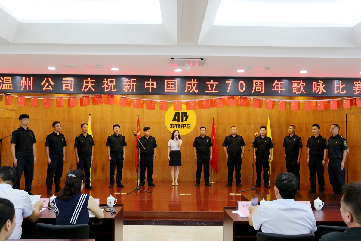 8月27日下午,温州公司庆祝新中国成立70周年歌咏比赛在金融守押中心行政楼多功能厅激情上演,公司领导、各支部书记、全体行政人员和部分员工等200余人等到场观看比赛。