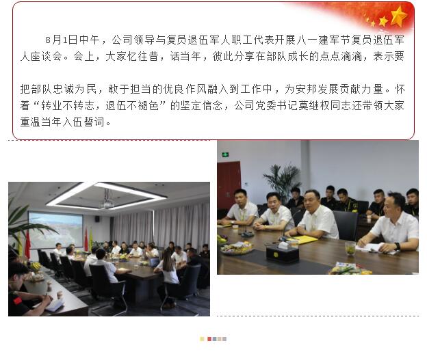湖州公司开展“同庆建军佳节,共振安邦士气” 庆八一系列活动