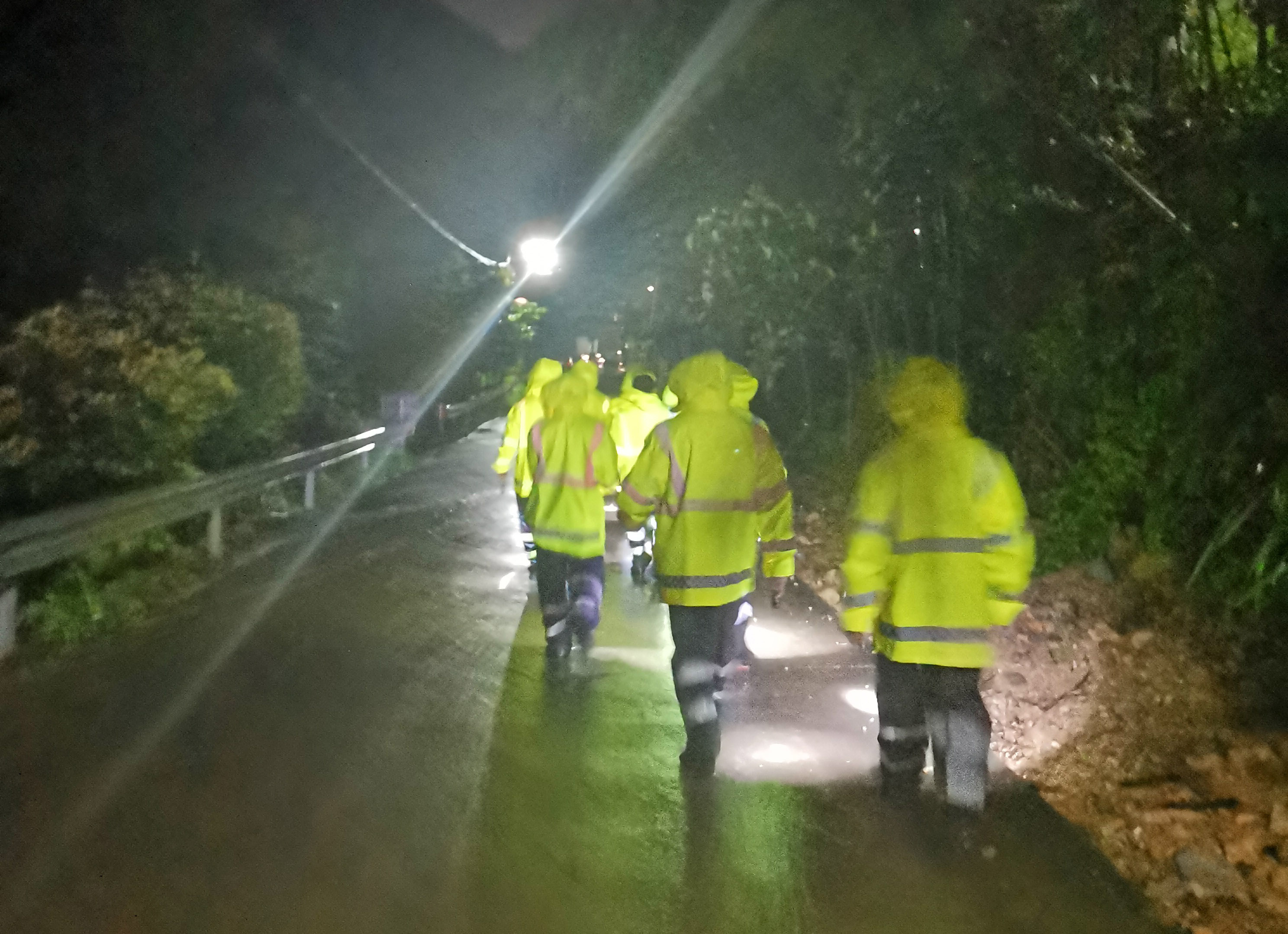 4日凌晨1点04分,接柯城应急管理局电话:“九华乡大侯村发生泥石流灾害致多间民房房屋倒塌,人员受困,请支援”。留在公司待命的公司领导迅速组织集结应急小分队24名队员在赶赴现场,于1点48分到达指定地点。