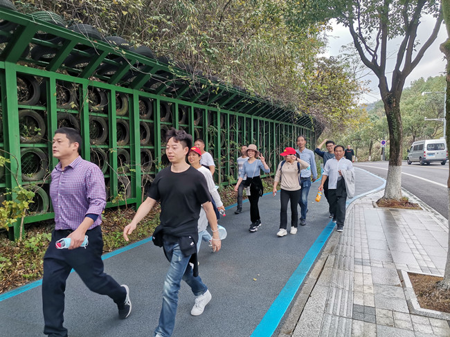 稍作休息后,大家开始徒步环湖,一路上,走过了小普陀,经过了韩玲老街,最终到达东钱湖水上乐园,行程共计10余公里。大家都精神抖擞,兴致高昂,一边呼吸着新鲜空气,一边进行着工作和生活上的交流,欢声笑语中享受大自然带来的喜悦。10公里的徒步,对于大多数人来说,有点漫长,但是全程没有一人掉队,全部坚持走完。蓝天白云、红旗飘飘,安邦志愿者们在东钱湖畔走出了一道亮丽的风景线。