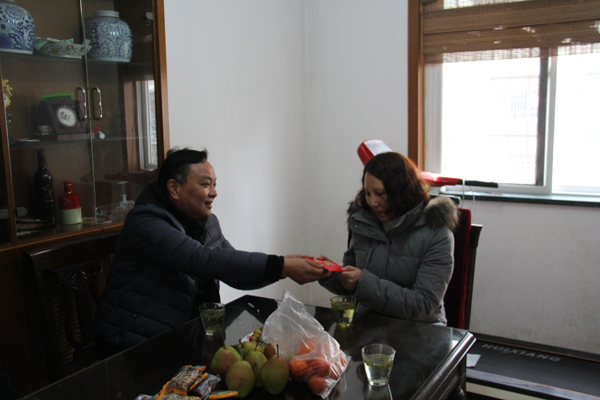 近日,湖州公司领导一行,带着公司工会浓浓的关怀之情,对公司员工吴建荣、钱军、汤勇斌、周钟忠、宋国荣、姚伟和张倚伟等7户困难职工进行了春节前的走访慰问,为他们带去了米、油等日常用品,使困难职工感受到大家庭的温暖。