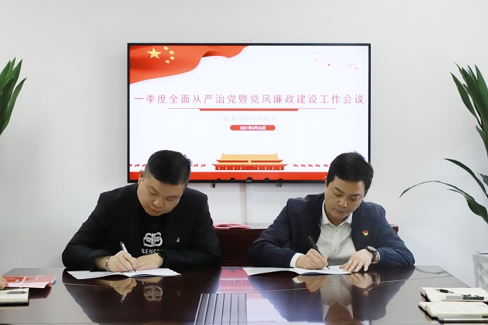 韩光华分别与班子成员、各部门(中心)负责人签订2021年度党建纪检工作责任书和2021年度党建暨党风廉政建设责任书。