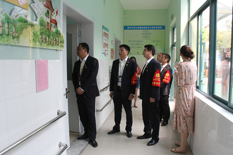 全体党员同志们在福利院社工部吕老师的带领下,实地参观了宿舍、教室、医疗康复区域等,与福利院的老人和孩子们互动交流,了解他们的生活、康复环境以及孩子们的教学情况。