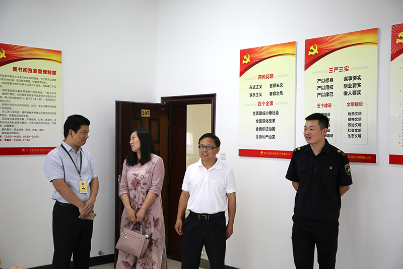 5月31日,省第五监狱宣传保卫科科长张向忠在市委党校党史党建研究中心主任王娟娟陪同下,到金华安邦公司考察学习党建工作。党委委员、副总经理潘晓斌及相关部门负责人陪同。
