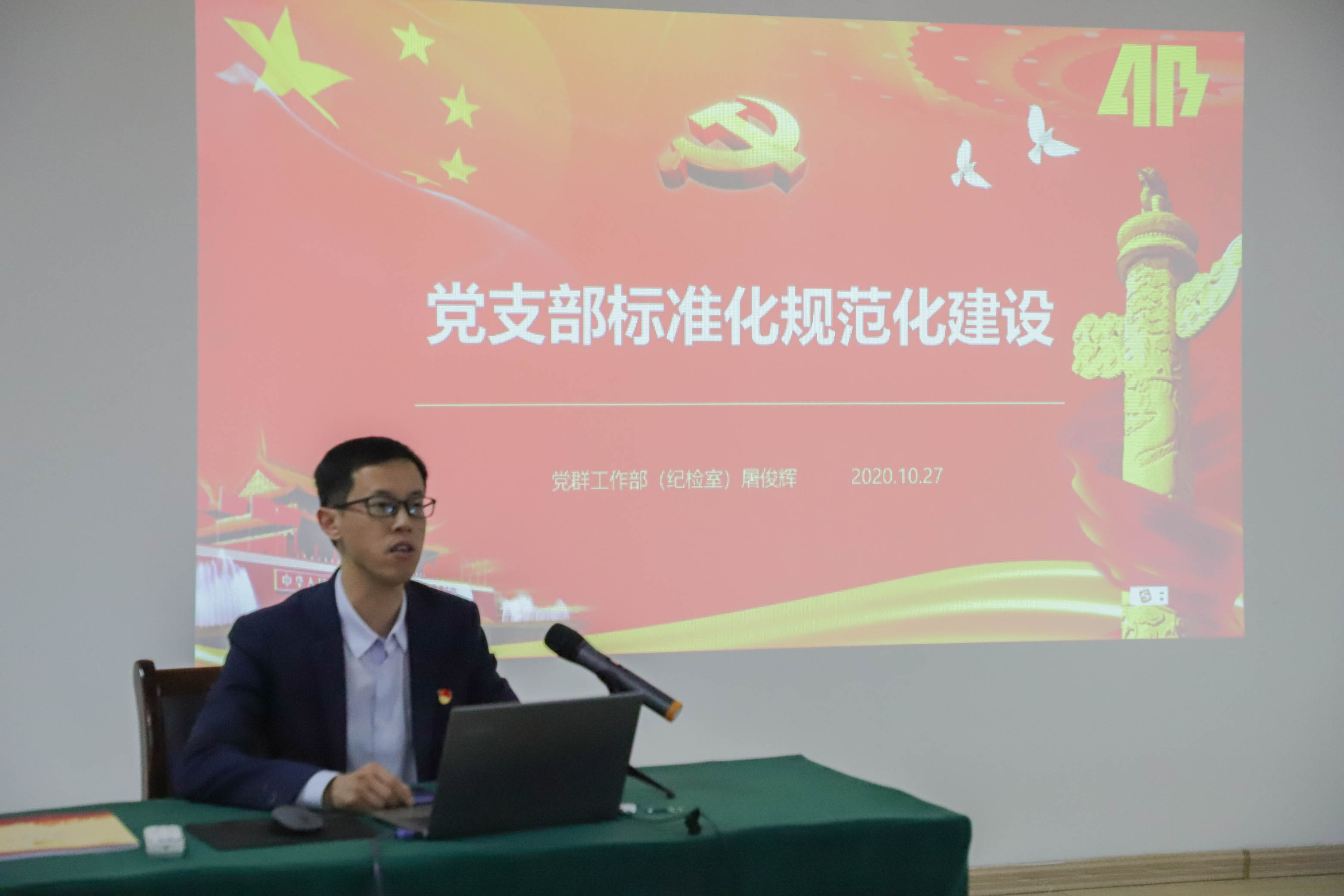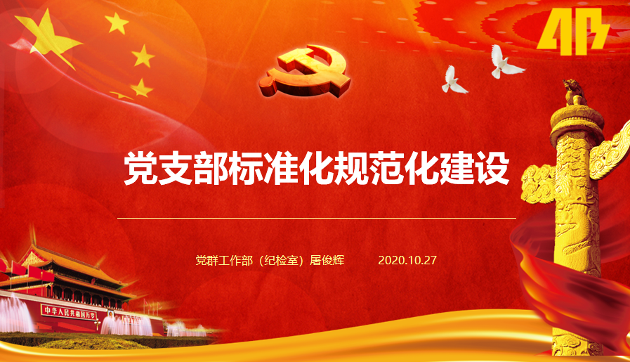 会上,屠俊辉分别从党支部标准化规范化的基本知识、加强党支部标准化规范化建设的意义、当前党支部建设中存在的问题、推进党支部标准化规范化建设的措施、加强党支部标准化规范化建设的思考等五部分进行交流分享,重点围绕支部自身建设标准化、工作制度建设标准化、活动阵地标准化、党建载体标准化、党员管理标准化、基础资料标准化等六个方面对如何进一步推进党支部标准化规范化建设进行了详细讲解。与会人员认真聆听,带着问题来,拿着方案回,系统学习了支部建设的重要内容和提升改进的措施方法。