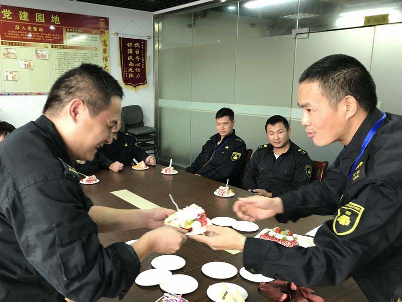 10月20日中午,公司工会为9-10月份生日的陈海康、翁挺杰、何江斌、张平等12位队员举办了一场集体生日会。大队管理人员与队员一起吹蜡烛、切蛋糕,共唱生日祝福歌,共同分享了快乐时刻,现场温馨的场面令人动容。